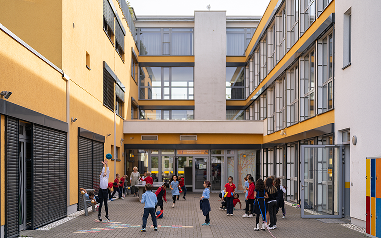 Willkommen auf unserem modernen Schulgelände am SÜDCAMPUS Bad Homburg, wo Kinder aller Altersstufen und aus über 50 Nationen gemeinsam lernen und spielen. Auf Ihr Kind warten lichtdurchflutete und optimal ausgestattete Gruppen- und Klassenräume sowie unsere altersgerechten Außengelände, die zum Toben, Spielen und Verweilen einladen.